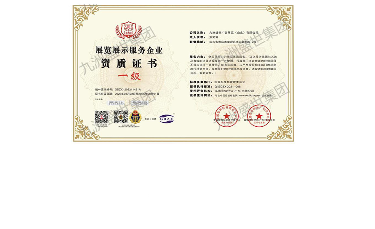 九洲盛世廣告展覽(山東)有限公司是極具時代創(chuàng)新實力的展覽展示整合服務商,專注于展覽展示策劃創(chuàng)意、空間設計、虛擬仿真、互動科技、影視制作、軟件開發(fā)、系統(tǒng)集成、工程運營的跨界整合,致力于為各類政企客戶提供多媒體展館綜合解決方案。我們致力于為客戶提供咨詢、策劃、設計、科技、工程落地一站式標準化服務,業(yè)務涵蓋企業(yè)品牌展廳、企業(yè)產(chǎn)品展廳、文化博物館、地產(chǎn)主題館、科技館、黨建主題館等各類多媒體展館一體化總包工程。一直以來,我們始終秉承“創(chuàng)新、專注、高效”的理念,關注客戶體驗不斷提高核心競爭力。